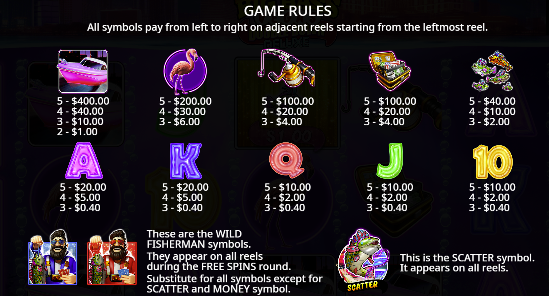 • Sticky Fisherman Guarantee: Fisherman Wild remains on reel 5 throughout free spins for automatic collections.