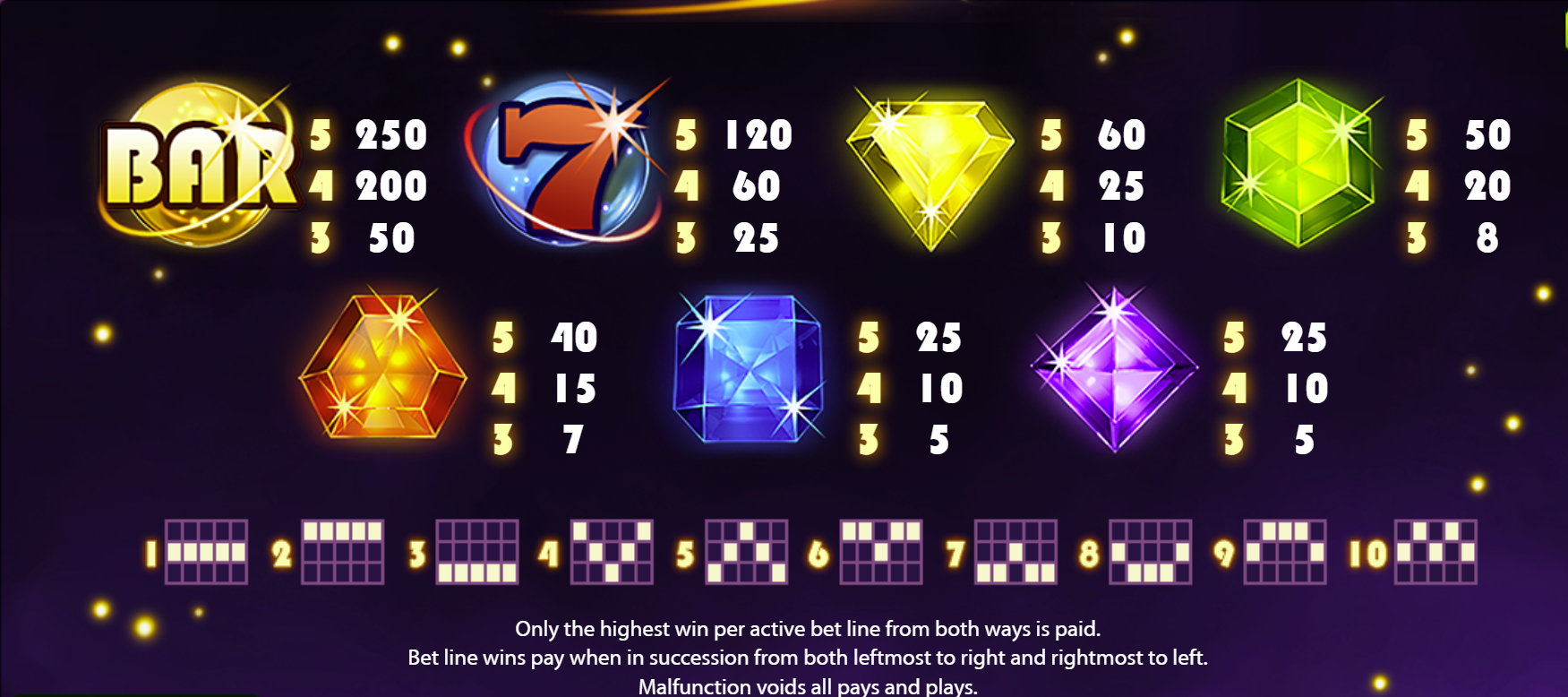 - Payouts pay both ways (left-to-right and right-to-left) improving hit frequency.