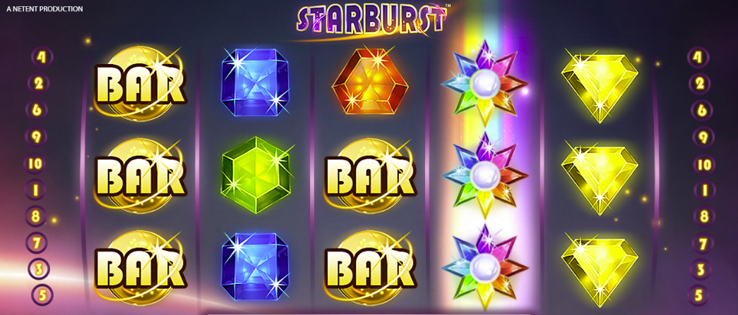 - Starburst Wild expands to full reel, substitutes for all symbols, and triggers re-spin when it lands on the middle reels.